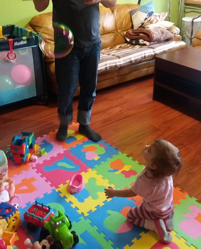 Kolorowe, mieniące się, mrugające… przyciągają dzieci jak magnez. My nasz pierwszy projektor dostaliśmy w prezencie i był strzałem w dziesiątkę. Zarówno oglądanie poświaty na ścianie czy na suficie ale też na własnych rączkach czy na buzi mamy. Doskonale tez sprawdziły się małe lampki ledowe czy ruchomy projektor (kupiony tuż przed sylwestrem). A czemuż nie wykorzystać lampki i nie pobawić się w cienie czy nawet w teatrzyk cieni.