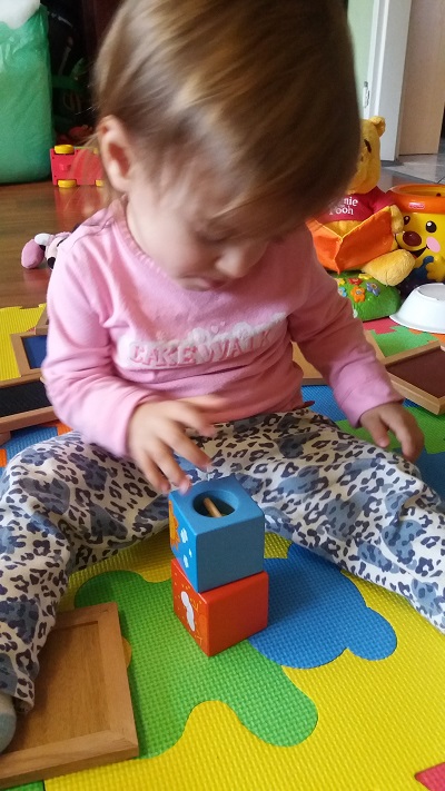 Zanim nasze maluchy opanują puzzle to właśnie układanki są doskonałym wprowadzeniem. Nie tylko doskonalą koordynację oko – ręka i chwyt pęsetkowy ale też są fajną zabawą. Najlepiej zacząć od tych z uchwytem oraz obrazkiem pod spodem, a następnie wybierać te bez „podpowiedzi”. Zresztą jak zawsze trzeba zaczynać od prostszych zanim przejdziemy do trudniejszych 😉